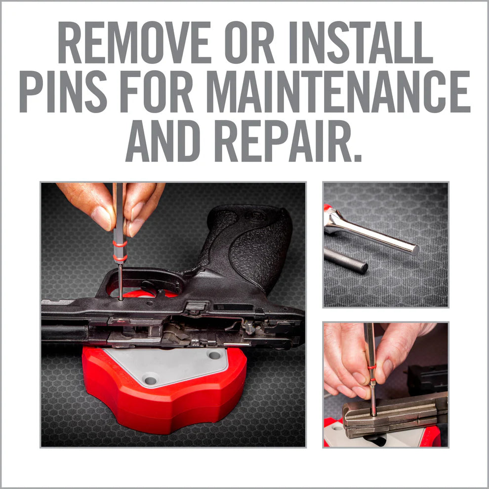 Gunsmithing punches are core tools needed to modify or disassemble firearms. The Accu-Punch 11-Piece Standard Pin Punch Set is designed from the ground up to work better with firearms. The punches are made of hardened steel with a nickel plating to resist corrosion. The hex-shaped handle and rubber O-rings provide precise control during use.
