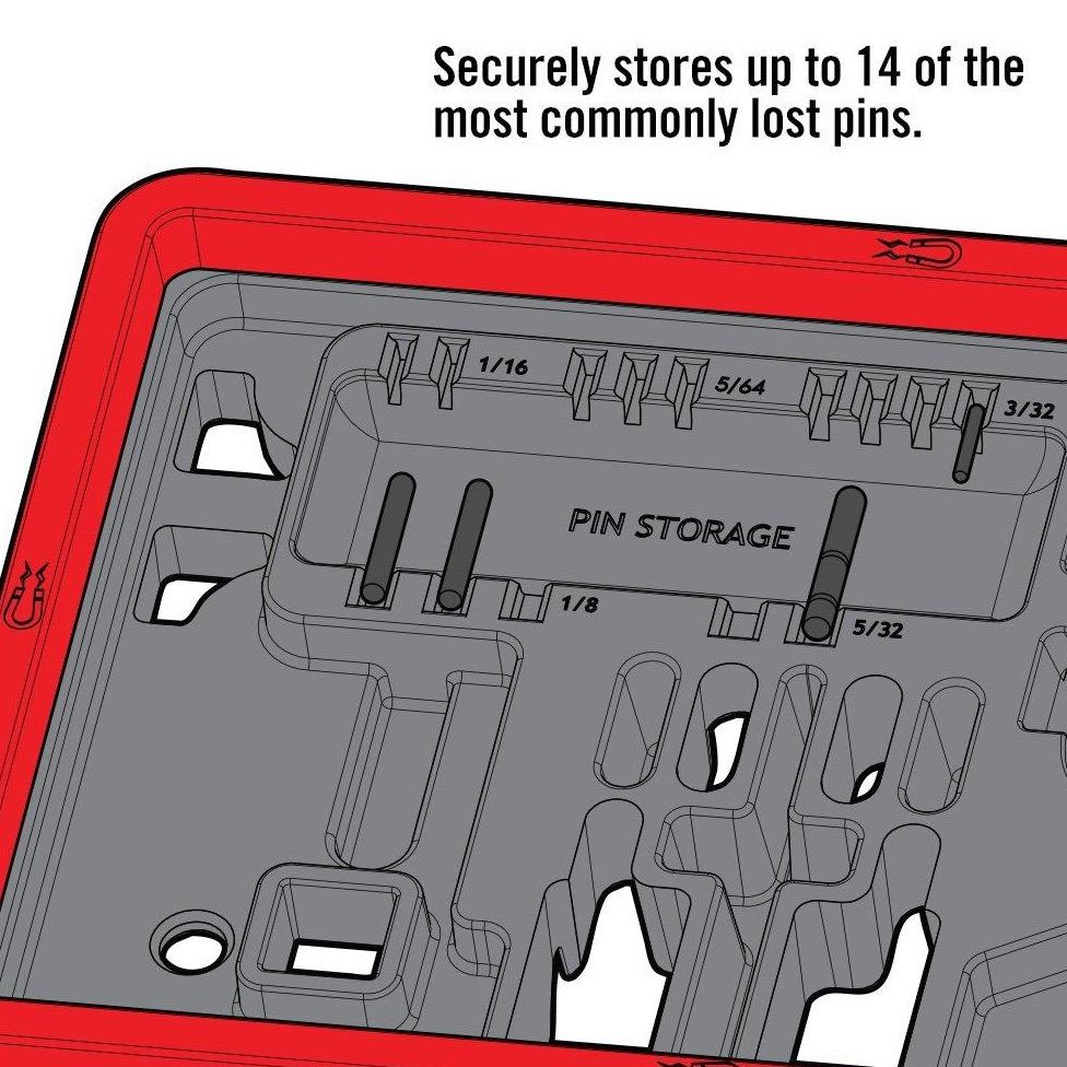 The Most Comprehensive AR15 Bench Block, Ever; Smartly Holds All Key Gun Parts to Easily Install 13 Different Pins. Embedded Magnets Hold Small Pins Securely.