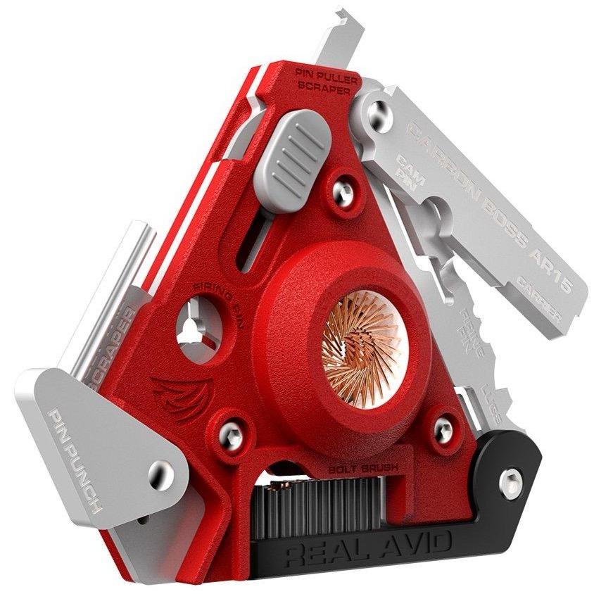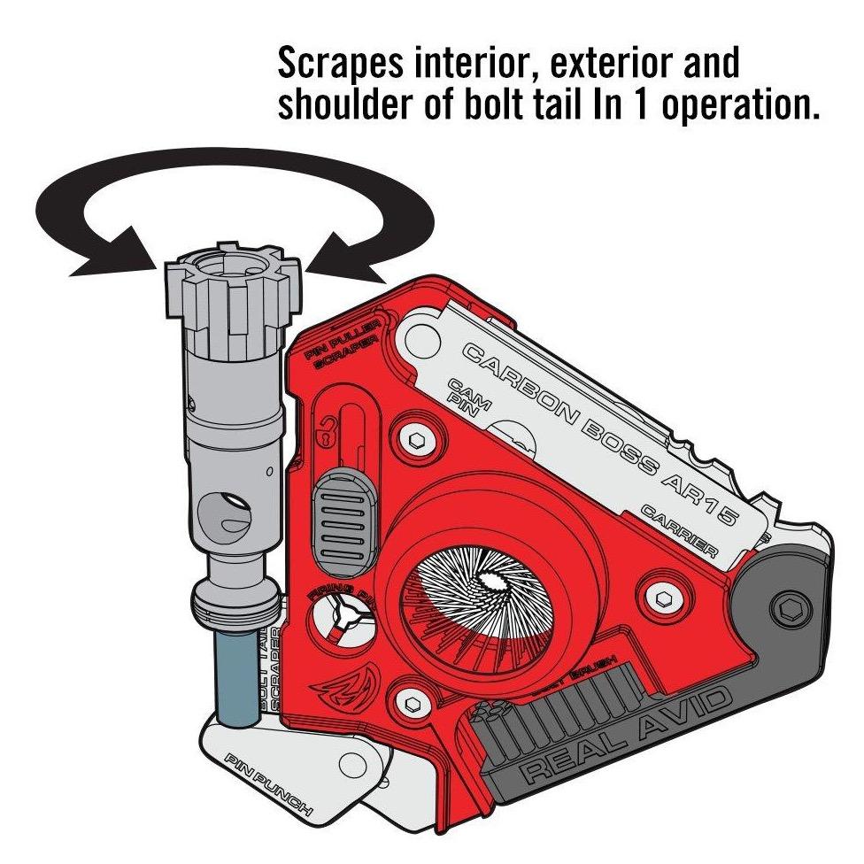 Scrapes & Cleans All 4 Major Parts Of The Bolt Carrier Group. Made by AR15 owners, this tool was designed to provide you with the most comprehensive carbon removal capabilities ever. With a rotating pin punch, cotter pin puller, interior bolt and exterior bolt scrapers, bolt lug scraper, bolt cam pin scraper, small and large firing pin scrapers, embedded 360 degree phosphor bronze bolt tail brush, replaceable rotating multi-surface bolt brush, bolt face scraper, bolt carrier scraper, and firing pin face scraper, this tool is carbon’s worst enemy. Each of the fold out tools lock into place with liner locks or detents. With labeled tools, the Carbon Boss helps you to get the job done quickly and get it done right. This eye catching, quality, and remarkably effective tool trail blazes the road to the new world of modern gun maintenance.