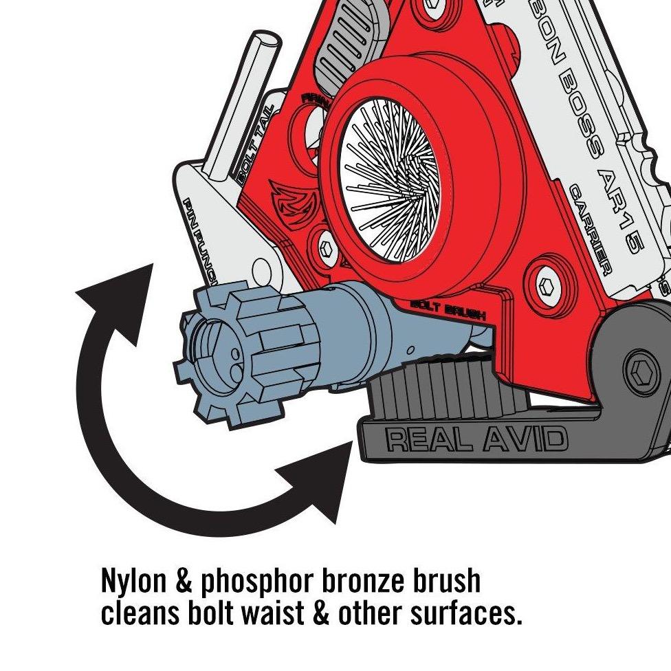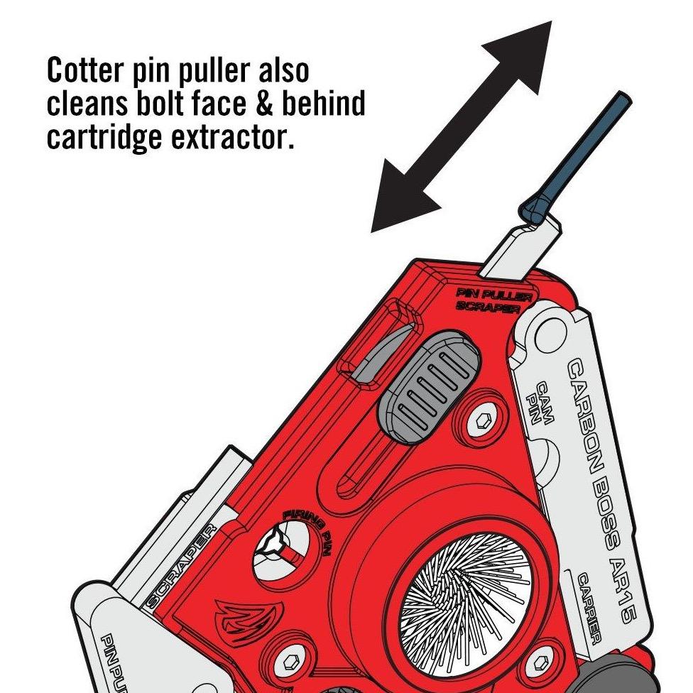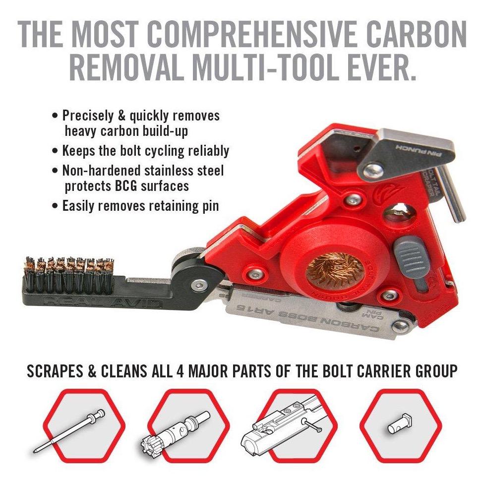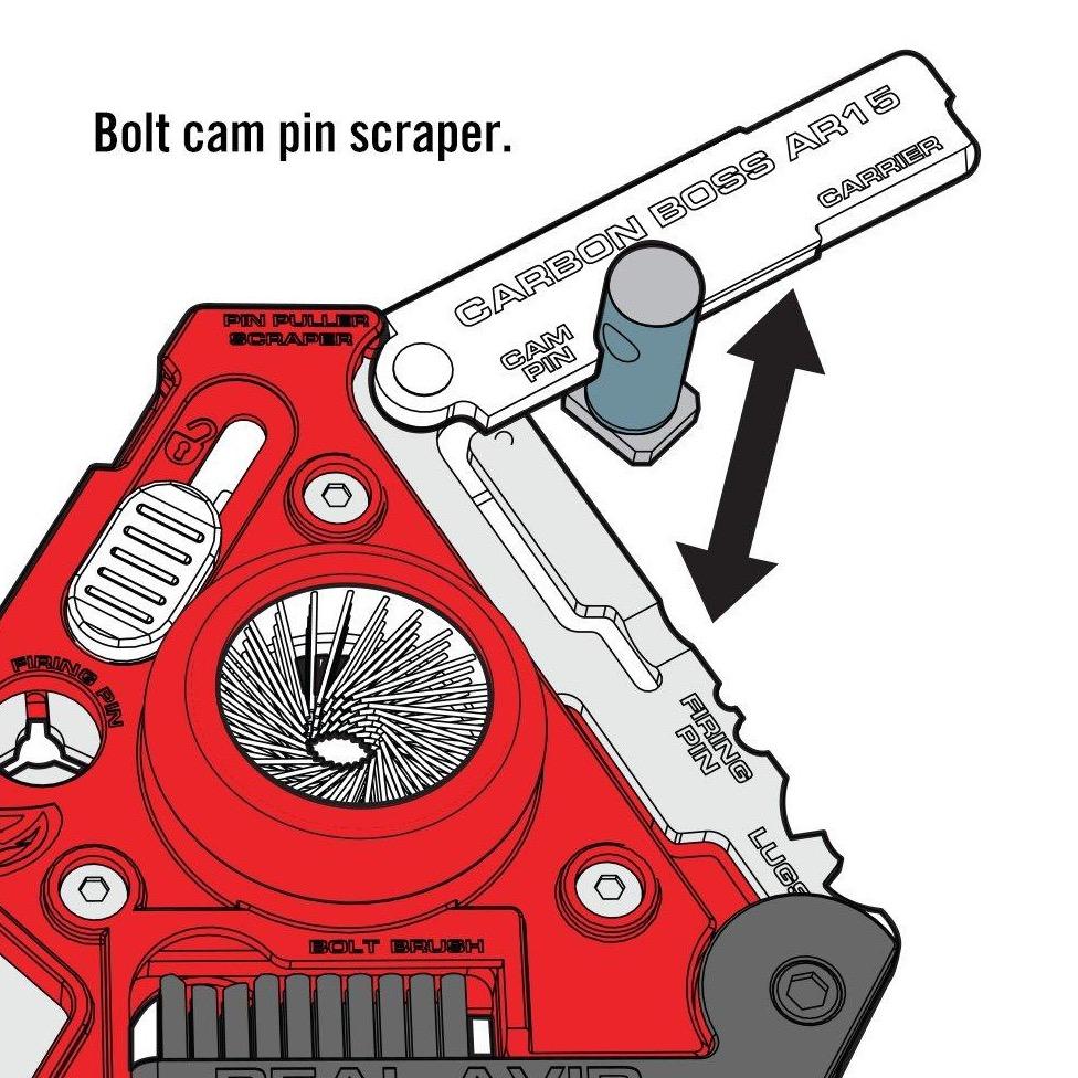 Next-Gen Carbon Super Tool For BCG’s. Smartly designed, this is the most comprehensive carbon removal multi-tool ever. Packed with easy-to-use precision cleaning tools, it gives you the power to easily demolish carbon from 13 surfaces on the bolt carrier, bolt, bolt cam pin & firing pin. It also features a pin punch, cotter pin puller, detailing brushes and a nylon carry sheath. Thorough, easy and fast, keeps your gun in the action.