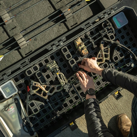 The GRID’s EPP material doesn’t absorb contaminants the way open cell foam does, providing resistance to liquid and chemical intrusion inside your case. With wider or taller equipment such as lights, bipods, or lasers, a center GRID Panel can be cut to fit or removed entirely to open space provided the firearm is braced on both ends.