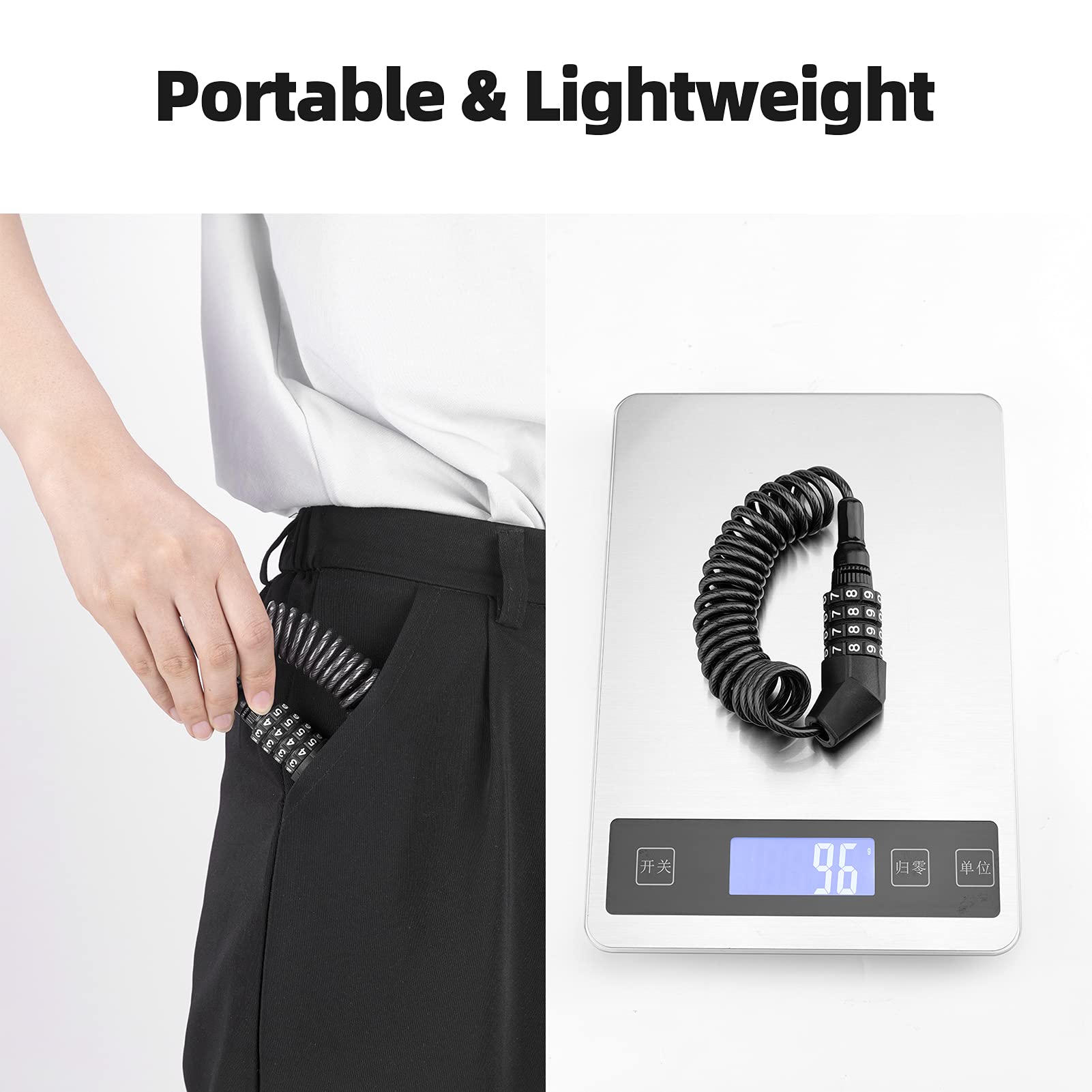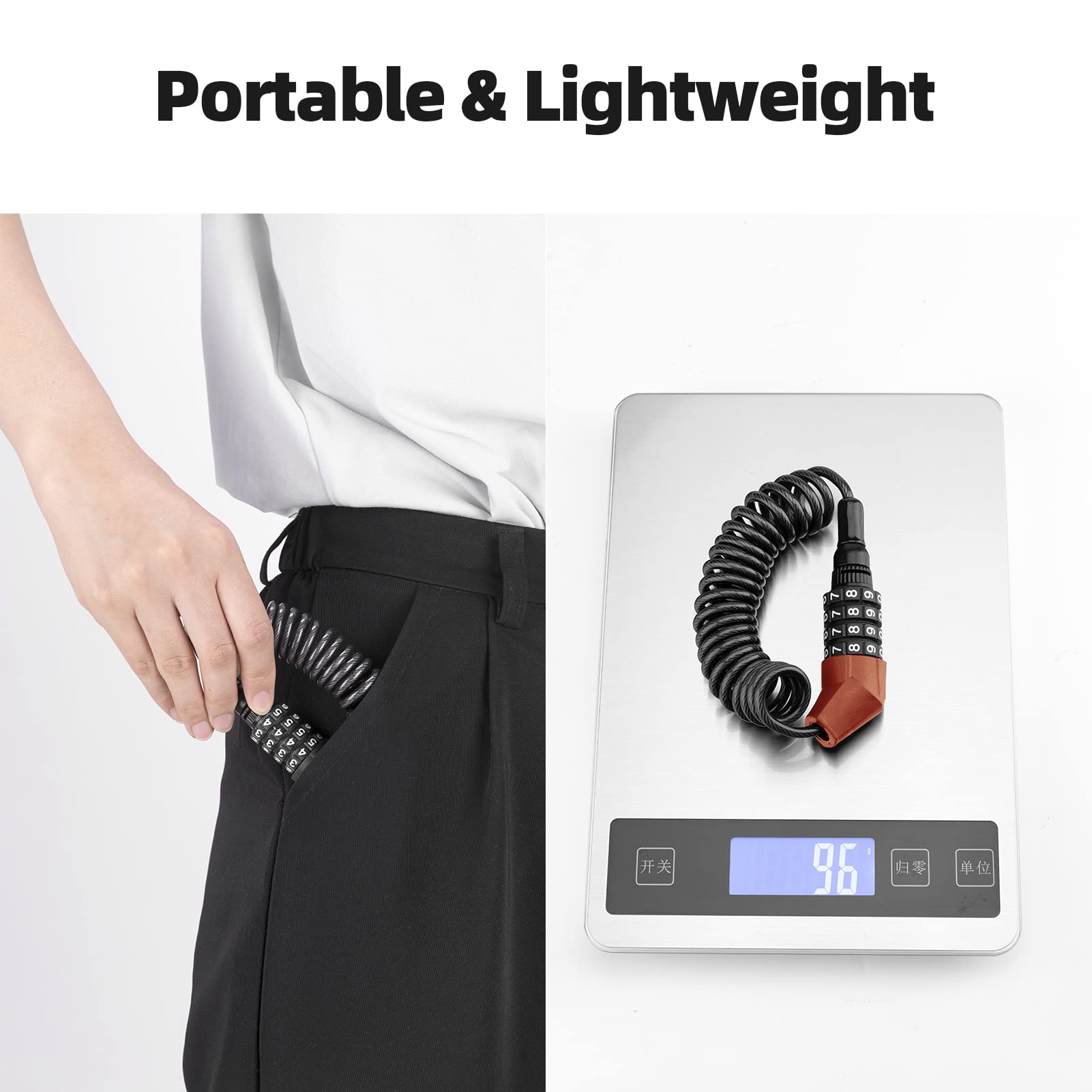 ROCKBROS Lightweight Helmet Lock, Resettable Combination Cable Lock for Bike & Luggage