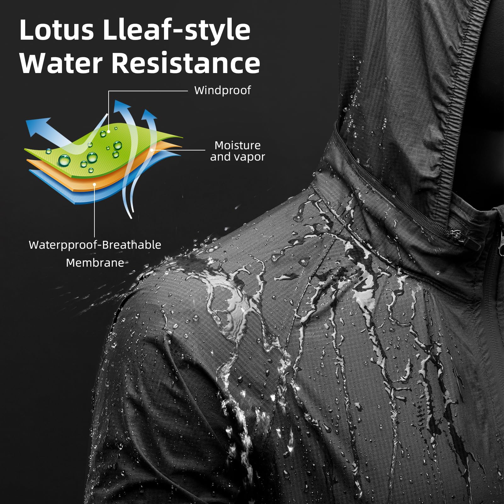 ROCKBROS Men's Waterproof Cycling Rain Jacket with Hood, Lightweight Reflective