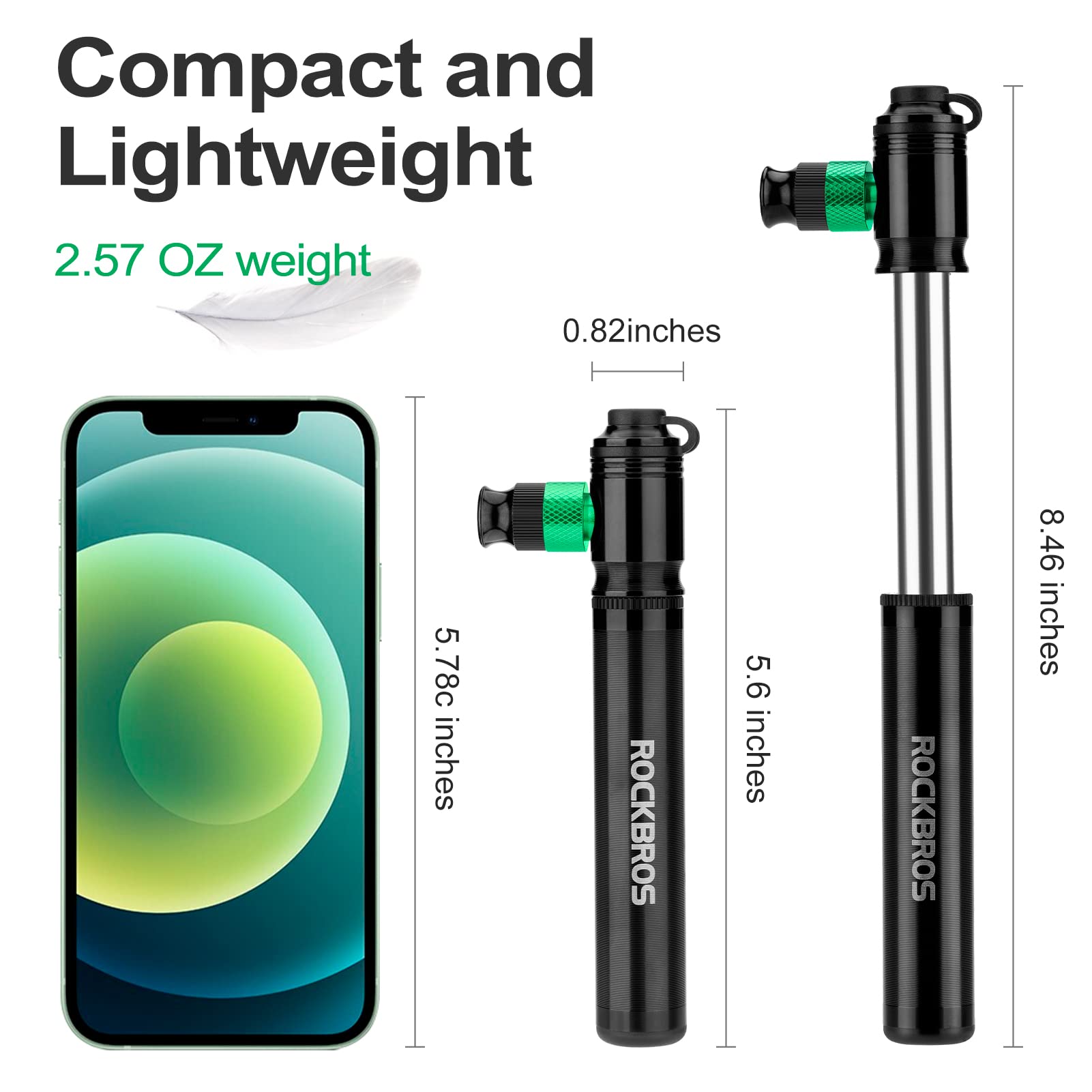 - 【Portable and Lightweight】: The mini bike pump only 5.5 inches long , 0.16 lbs. You can stick it in bike bag with all of other emergency bike repair tools and it barely takes up and space. You can mount bicycle frame pump on a bike frame using the included mounting bracket.