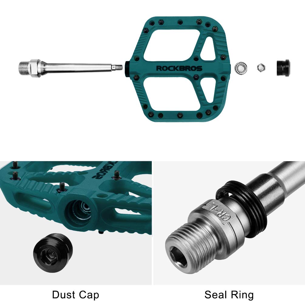 ROCKBROS Mountain Bike Pedals Nylon Composite Bearing 9/16" MTB Bicycle Pedals with Wide Flat Platform