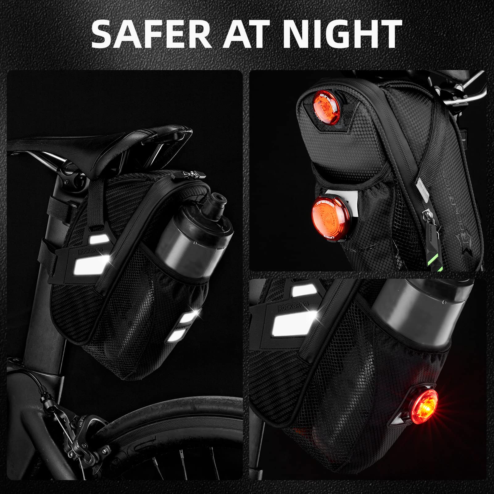 ROCKBROS Waterproof Bike Saddle Bag with Water Bottle Pouch, Under Seat Storage for Mountain and Road Bikes