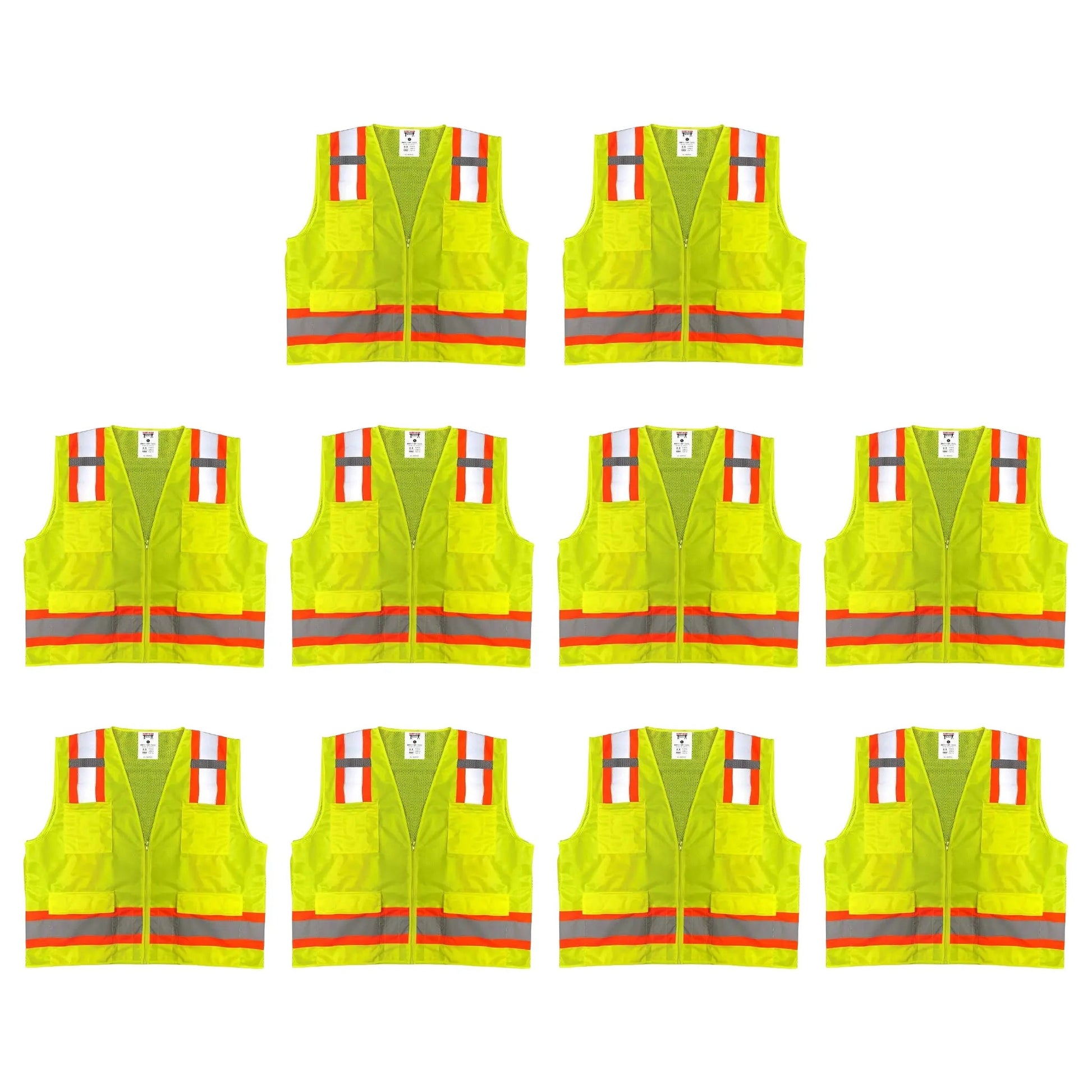 Safety Main 05TTSYZ Surveyor Vest, Class 2, Solid Front, Mesh Back, Hi-Vis Yellow, Pack of 10