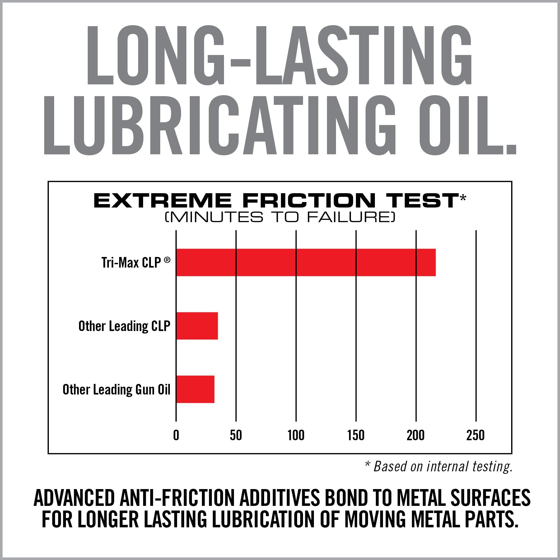 Real Avid Tri-Max CLP is an all-in-one gun cleaning and maintenance solution that allows you to clean, lubricate and protect against rust in one step. CLP saves you time and ensures effective gun maintenance that is the preferred solution used by today’s military. Tri-Max CLP advanced formula performs as an effective bore cleaner and solvent on all gun parts. It will tackle grime and burnt powder residue and will help minimize gunk build-up. Tri-Max CLP ensures long-lasting lubrication of moving parts to reduce friction and to protect from wear. It excels in extreme environments and will work reliably in heat, dust, or arctic cold. Tri-Max CLP is chemically engineered to act as a powerful inhibitor. It creates a moisture barrier to protect against the environment and prevent rust.