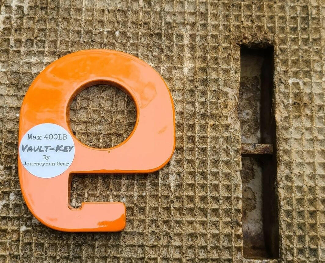 The Vault-Key is laser cut out of 3/8" steel plate and powdercoated Hi-Viz orange.